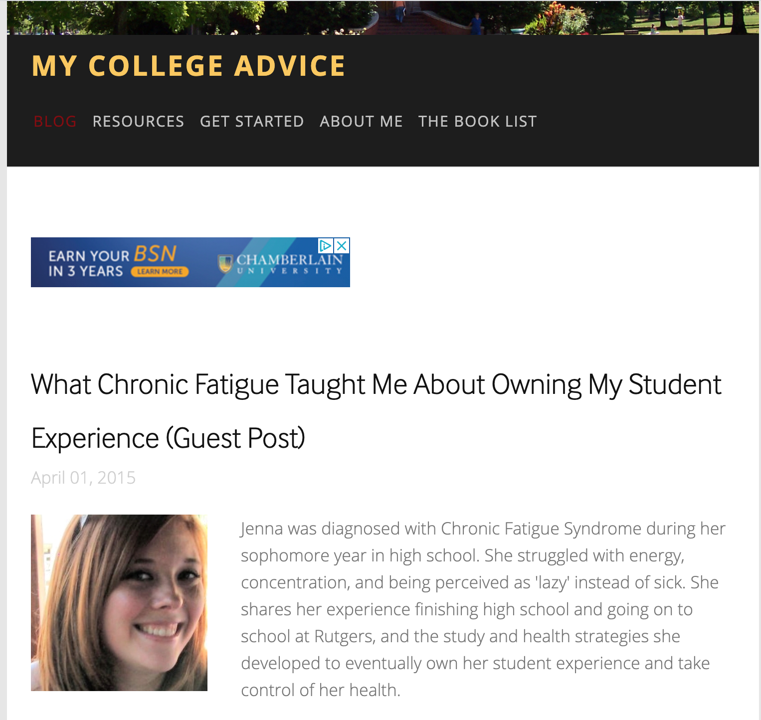 This blog post will be a bit different than my previous posts-I will be reviewing another blog similar to mine entitled “My College Advice”. This blog was constructed by Katie Dwyer and features an abundance of articles circulating around (you guessed it) college.